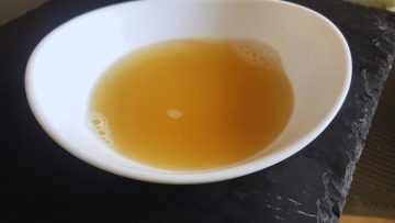 - Retira parte (yo quito más o menos 1 L) del agua de cocción y resérvala en un recipiente del tamaño adecuado.