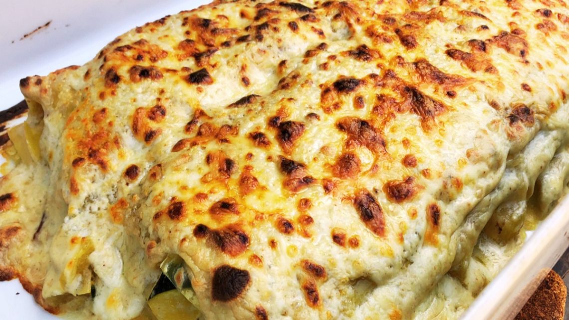 Riquísima lasaña de calabacín y queso azul con taquitos de bacon, que te permitirá hacer una increíble receta de temporada con los tan típicos calabacines que tan prolíficamente que crecen en las huertas de verano-otoño.